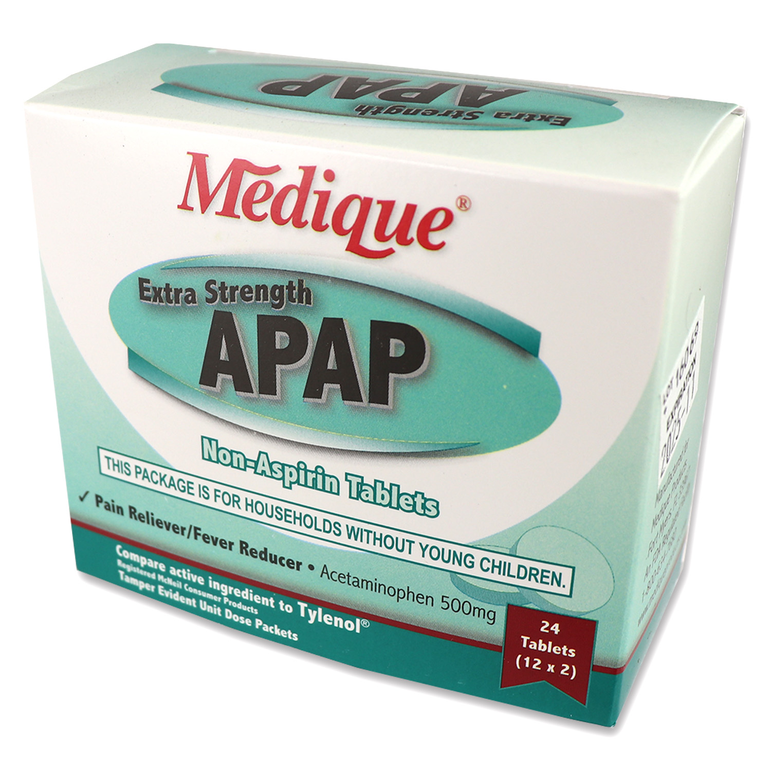 Extra Strength APAP, 100 tablets per box, 50 packets of 2 tabs